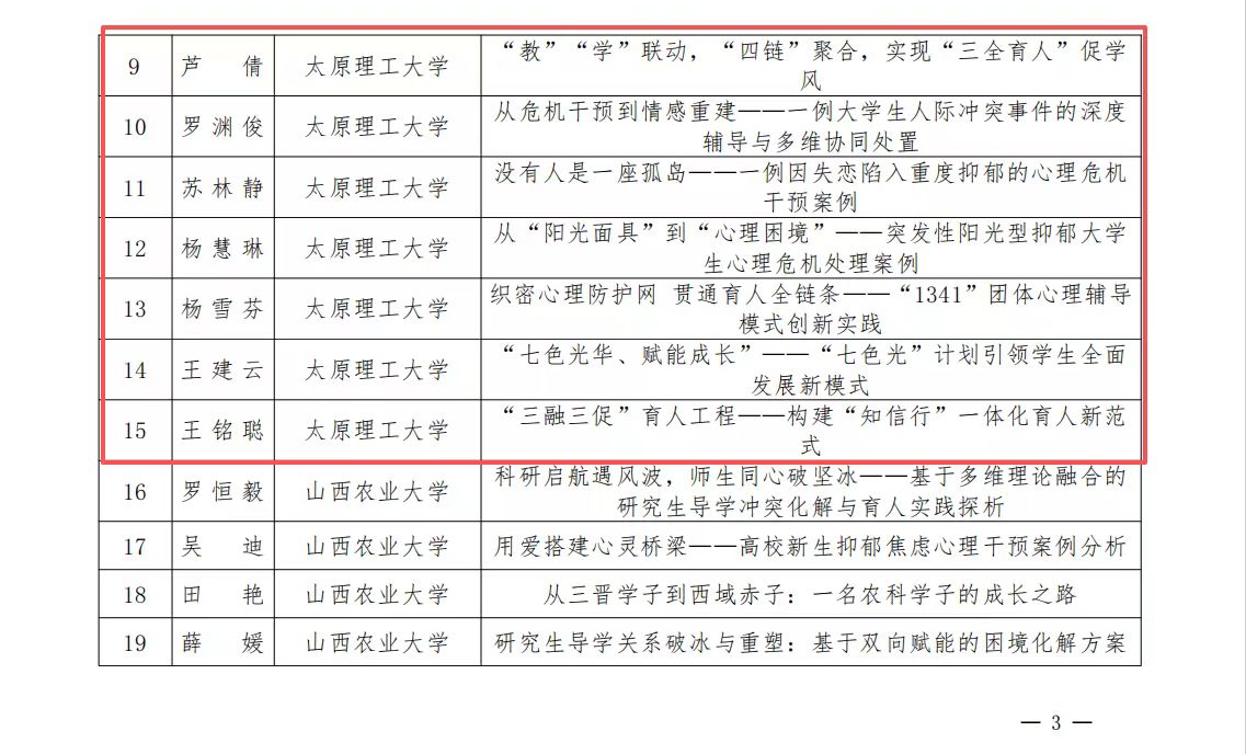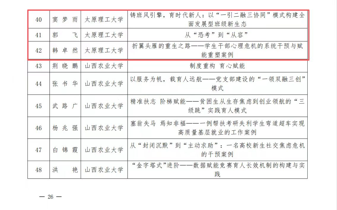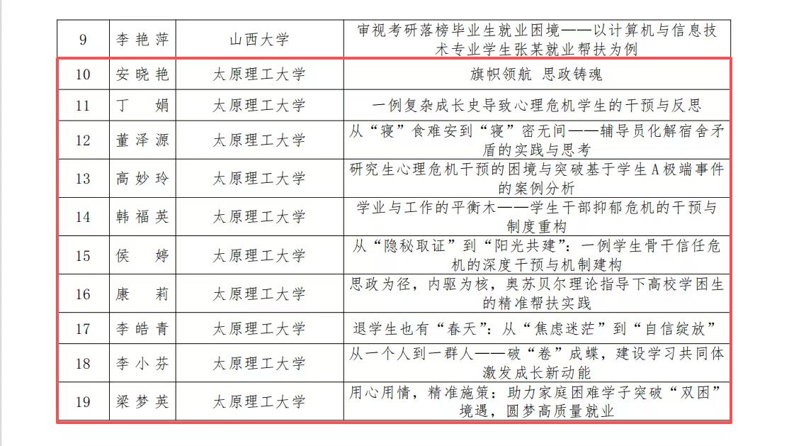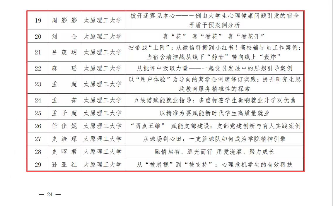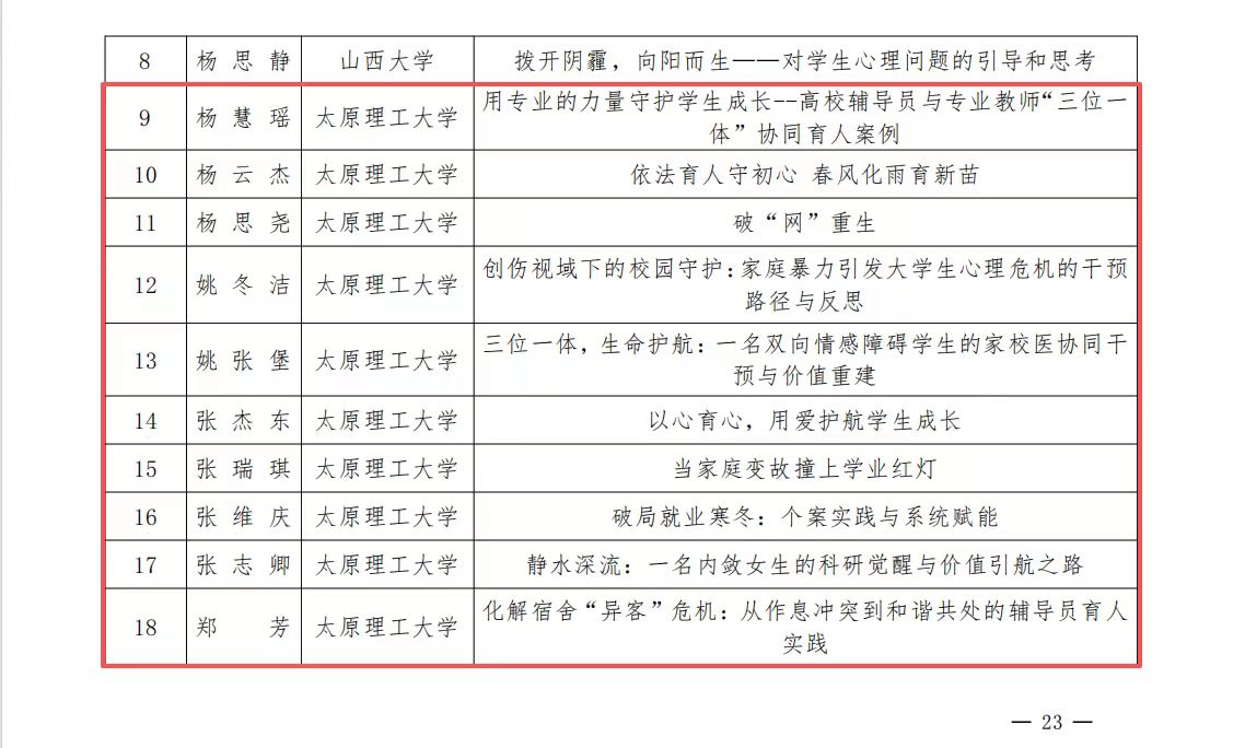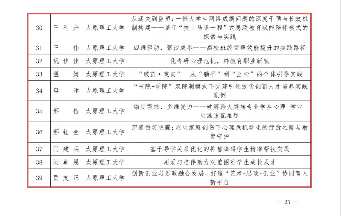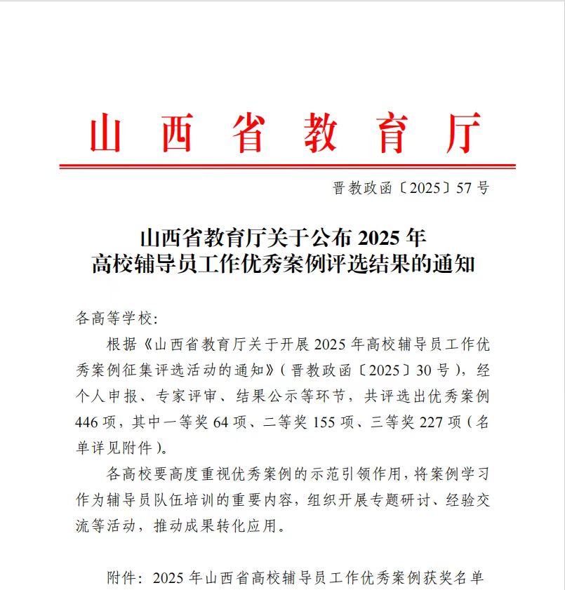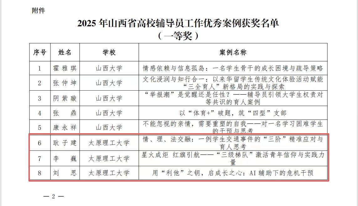 太原理工大学在山西省2025年高校辅导员工作优秀案例评选中斩获佳绩