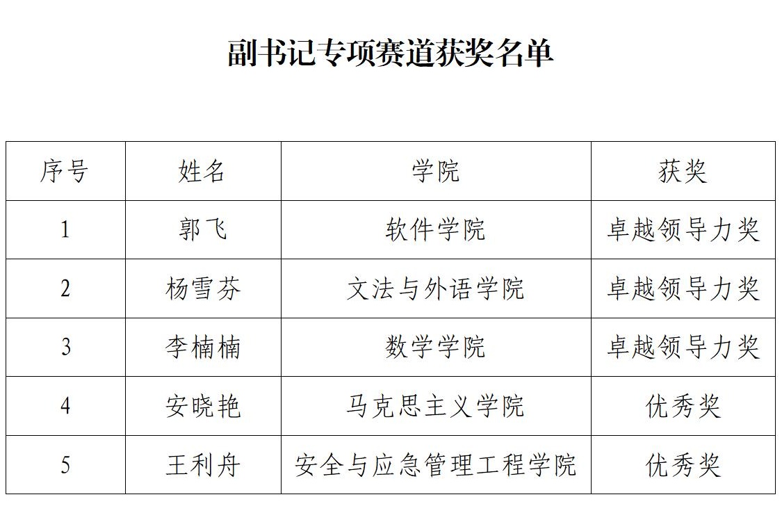现场为获得大赛一二三等奖和初赛各项目一等奖的选手进行颁奖。专职辅导员赛道中,史圣洁等2人获一等奖、苏林静等3人获二等奖、李小芬等5人获三等奖、吴凯丽等6人获优秀奖。副书记专项赛道中,郭飞等3人获卓越领导力奖,安晓艳等2人获优秀奖。与会领导分别为他们颁发荣誉证书并合影留念。