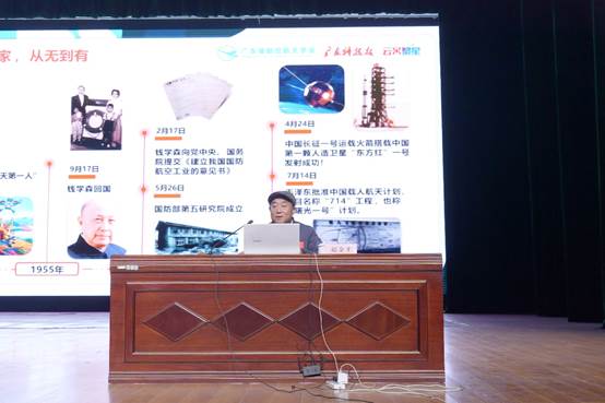 赵金才教授围绕“中国航天的昨天、今天、明天”主题开讲,通过“白手起家,从无到有”“筚路蓝缕,从弱到强”“从航天大国到航天强国”三个板块梳理我国航天发展脉络,并结合“天宫“变形记”、“运载火箭”、“嫦娥探月”的内容科普航空航天知识,阐释了载人航天工程与深空探测的重要意义,最后以“今天,是各位了解航天的起点;明天,即将是星辰大海的征程!”作结,向在场同学寄予了航天探索与未来成长的期望。