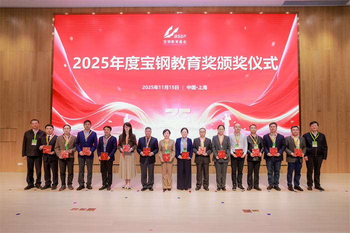 11月15日,2025年度宝钢教育奖颁奖仪式在上海举行。今年,来自清华大学、北京大学等全国115所高等院校的282名教师、509名学生荣获宝钢教育奖,我校3名教师和4名学生凭借出色表现荣获2025年度宝钢教育奖。我校党委常委、副校长任喜莹带队参加颁奖仪式,3名获奖师生代表在颁奖仪式现场接受表彰。国内交流合作办公室相关负责人参加相关活动。
