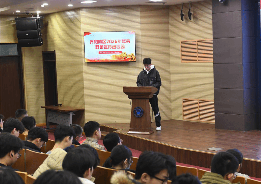 随后,万柏林区征兵办公室薄玥同志专题解读征兵政策,详细讲解报名、体检、政考等关键环节,并对大学生入伍优待、学费补偿代偿、退役升学就业等优惠政策逐一说明,为同学们应征入伍提供了全面、准确的指引。