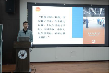 在“以赛铸魂,以创赋能”主题团课上,刘洋老师聚焦科技竞赛的时代价值,从科技兴国、赛事安排、作品展示和未来展望四个维度展开讲解。他结合世界科技前沿,阐释了国家科教兴国战略与破解“卡脖子”问题的紧迫性,引导学生将个人成长融入国家发展。刘老师还系统介绍了“挑战杯”等竞赛的赛程与申报要点,展示往届优秀作品,鼓励同学以赛促学、以创赋能。