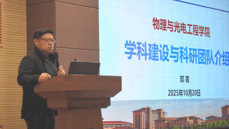 接下来,邓霄副院长详细介绍了物电学院的学科布局、研究方向及主要科研团队,帮助新生全面了解学院科研平台与资源,为同学们合理规划学术生涯、明确发展方向提供了有力指导。