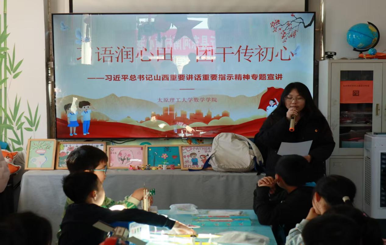 11月2日,为深入学习贯彻习近平总书记山西重要讲话重要指示精神,传承红色基因,厚植爱国情怀,数学学院第三期青马工程“尚德班”学员来到大同市灵丘县东河南村童心港湾,开展“习语润心田,团干传初心”主题团日活动,为乡村孩子们送上一场兼具思想性与趣味性的“红色盛宴”。