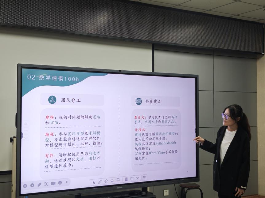 吕佳琦为研一同学带来了一场内容详实的数学建模的备赛指南。从团队分工到赛程规划,详细分享了数学建模竞赛的全流程——建模手需提供清晰的解题思路,编程手要熟练实现模型求解,写作者则负责用精准的文字与图表呈现成果。100个小时的赛程中,合理的时间分配尤为关键:从选题、分步解题到论文撰写与优化,每一步都需团队高效协作。