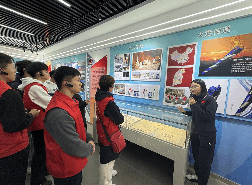 在博物馆讲解员的引导下,新生们依次参观了“古代体育厅”“近现代展厅”“奥林匹克走廊”“体育名人堂”及“国防科技体育厅”等五大核心展区。古代体育厅的丁村石球、投壶游戏,近现代展厅的“战斗篮球队”史料、“王氏姐妹”网坛传奇,再到奥林匹克走廊的奥运圣火盆、体育名人堂里周晓兰、董栋等健儿的战袍,国防科技体育厅的射击、跳伞等项目的发展历程,更设置互动展项,这些都无不诉说着三晋体育的千年脉络与拼搏精神。
