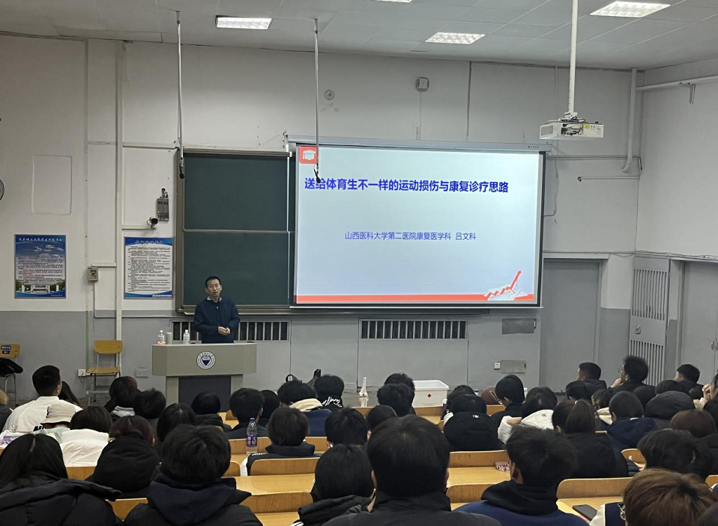 为深入贯彻《健康中国行动(2019—2030年)》战略部署,聚焦运动训练专业学生在体育锻炼与竞赛中的核心健康需求,切实提升学子运动损伤急救处置、疗后康复训练的专业能力,充分发挥“一站式”社区建设功能,2025年11月23日,体育与健康工程学院劳动教育基地联合智渊社区特邀山西医科大学第二医院康复医学科副主任医师、国家青年女排原队医吕文科医生走进校园,开展膝伤与脚踝伤病专场急救技能培训。活动由体育与健康工程学院团委副书记兼学工办副主任姜昆老师主持,吸引了300余名学生积极参与。