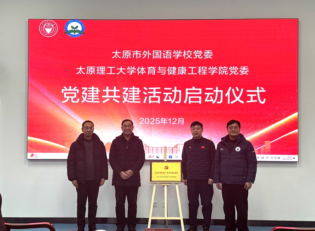 为深入贯彻落实新时代党的建设总要求,推动党建工作与教育事业发展深度融合,积极探索高校与基础教育学校党组织结对共建新路径,共同提升育人实效与基层党建质量,2025年12月11日,太原理工大学体育与健康工程学院党委赴太原市外国语学校开展党建共建合作活动。太原市外国语学校党委书记武翻旺、校长杨勇、校长助理阴晓东及校篮球队主教练王晖出席活动。体育与健康工程学院党委书记张体卫、副院长张和平、运行保障办公室主任韩俊伟、团委副书记兼学工办副主任姜昆、高水平运动队学生党支部书记温泽滨、就业工作辅导员滕冕,以及2024届研究生毕业生、优秀校友刘辉共同参加。