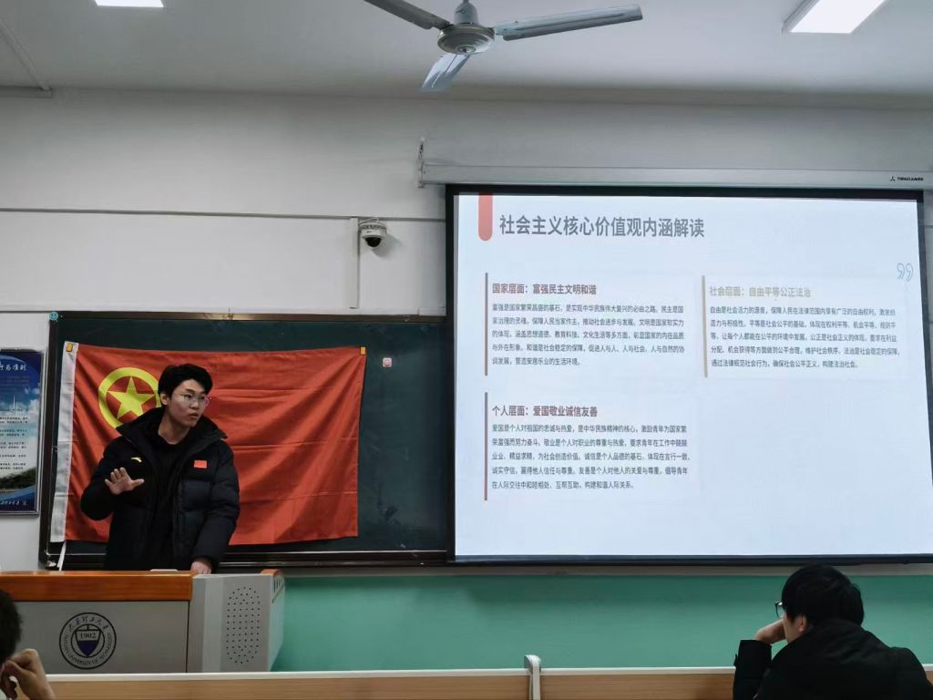 吴宏铭老师以践行社会主义核心价值观为主题,精准阐释其核心内涵,深度剖析其传承价值,从多维度详解实践路径,深化全体学生对核心价值观的认知理解,同时为广大同学明晰多元化践行方向筑牢理论根基。