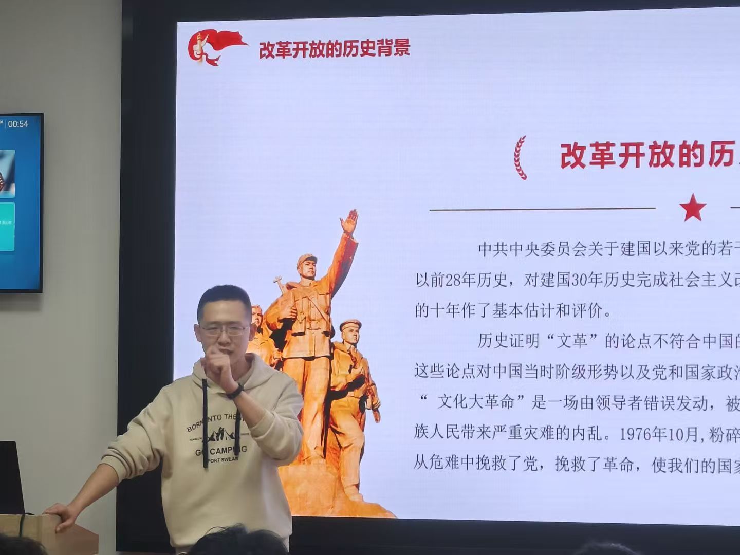 王泽宇老师围绕改革开放开展课程,梳理了近年改革开放取得的重要成果,让同学们了解到实现改革开放的三大转折的重要历史意义,同时引出个人境遇与国家发展是紧密相连的核心理念。