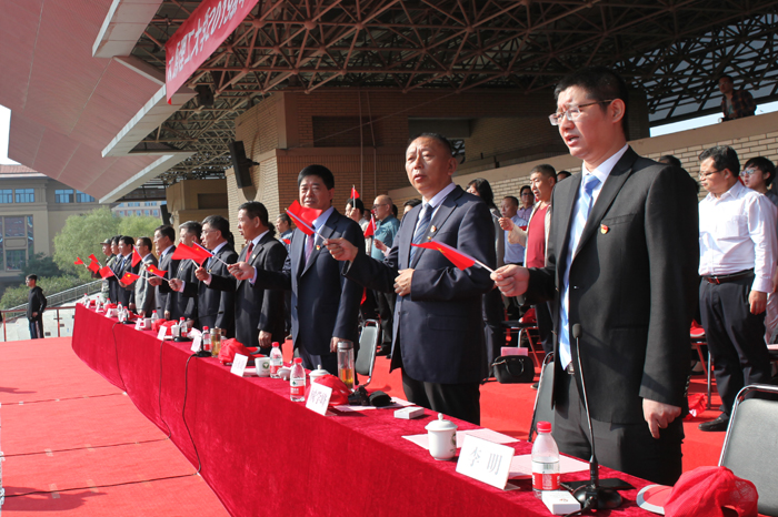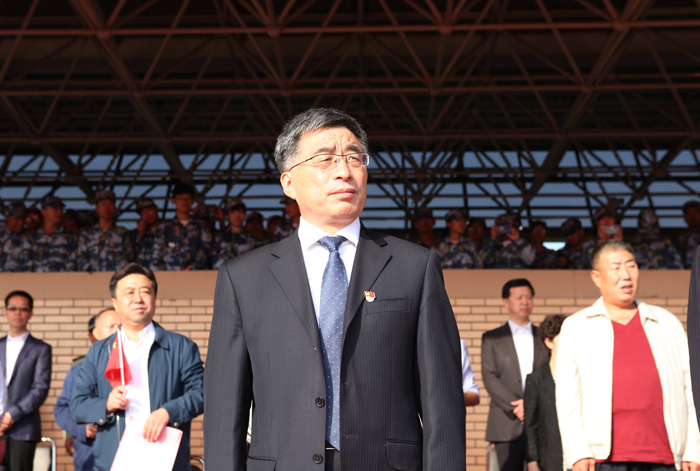9月29日上午,我校2019级本科新生军训汇报表演暨总结表彰大会在明向校区田径场举行。历经10余天军训后,英姿飒爽的受训新生以奋进的姿态进行军训成果汇报。校领导吴玉程、黄庆学、李晋平、刘润祥、翟健、吕永康、吴斗庆、树学峰、梁卫国、李明,中国人民解放军某部副政委于亮出席大会;校军训领导组成员及各营教导员,各党政职能部门负责人、基层党委(直属党总支)书记、各学院院长以及2019级全体新生参加大会。大会由军训团团长、副校长李明主持。