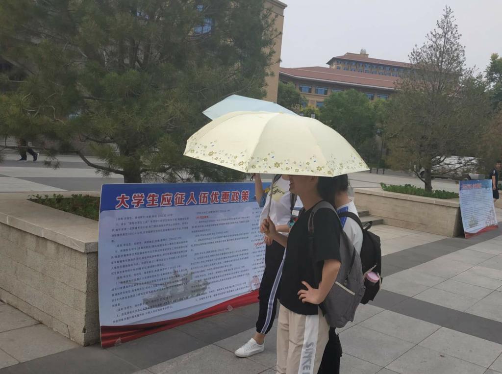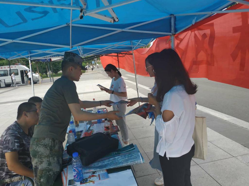 这次活动在明向校区西区广场设立征兵宣传咨询站,通过展板、悬挂横幅、张贴标语宣传提纲和发放宣传册等形式,向广大师生宣传国家的国防和征兵政策。区人武部和我校武装部的工作人员,现场向咨询的学生讲解大学生入伍的相关流程和事宜,并现场办公指导学生进行报名填表等工作,给同学们提供了方便。
