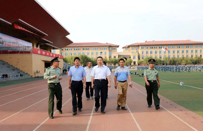 我校2016级新生军训工作从9月3日新生报到之后已全面展开,9月14日下午,校党委书记吴俊清、党委副书记刘润祥、副校长吕永康来到明向校区东区田径场视察了2016级本科新生的军训工作,并对担负军训任务的国防生教官进行慰问。